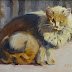 With a tad more confidence, I started a koi painting in watercolor batik on a larger piece of rice paper than I have in earlier paintings. This is 24 by 24 inches, and the paper is much more fragile and thinner than what I have used up until now. I am only half way through the process, and I have a few small tears in the paper. Am sure they will seal when I apply more wax, but would sure like to know how to avoid the tears! Really, I have been gentle with the paper, moving it gingerly so as to not tear it, but, there you are. And I drew the koi so large, that a crop may not work.